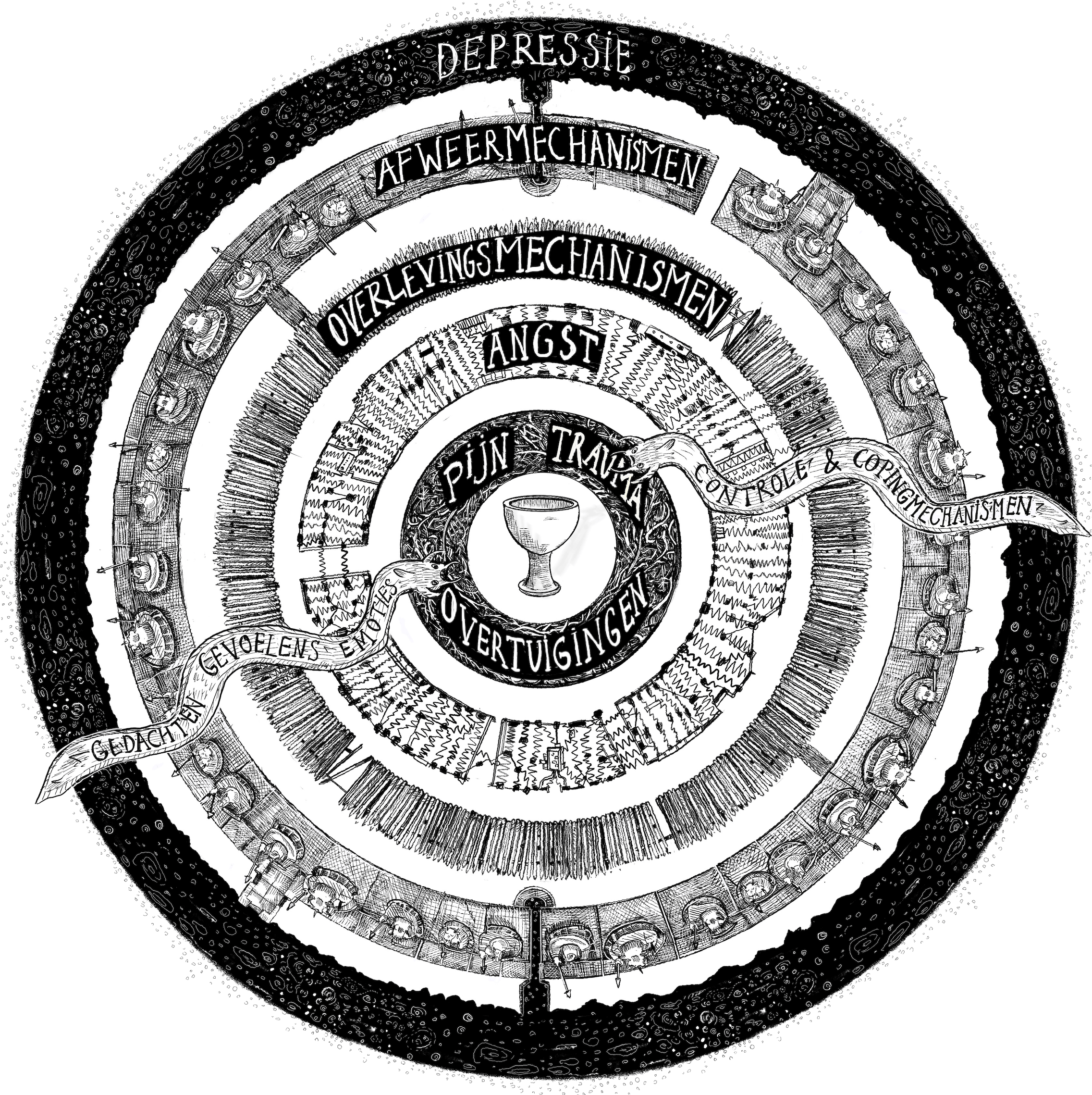 • Daaromheen ligt de voedingsbodem met pijn, trauma en overtuigingen